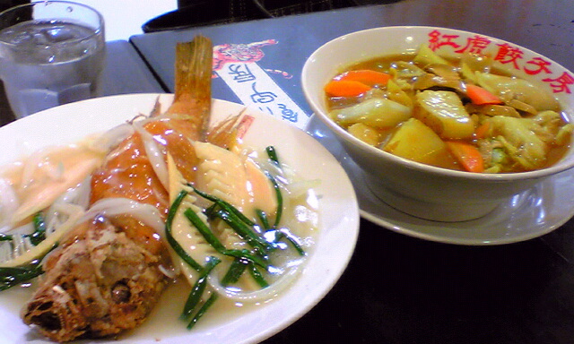 「ベガのブラックチャーハン」と「ガイルの甘鯛一本のせと塩麺(お店オススメNo.1(笑)」と「リュウのピリッとカレー麺」をオーダー!
